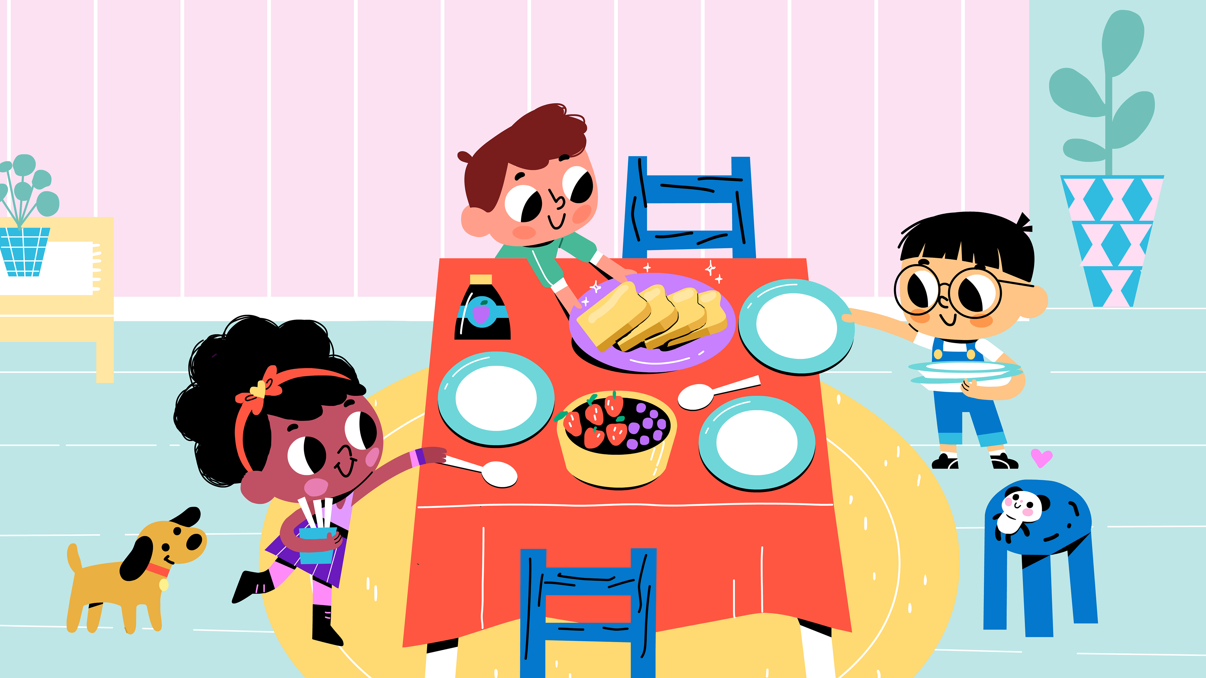Two-page spread illustration.